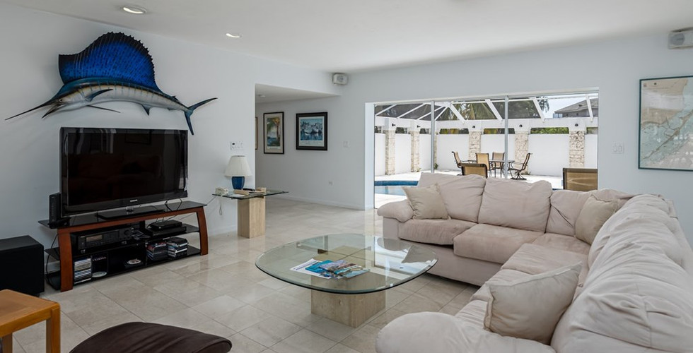 A boaters dream in this ideal location with 198’ of water frontage and room for 163’ yacht with a boat lift. Spacious lot and well designed interior includes a glass enclosed dining area on the water side with plenty of outdoor seating for lounging and entertaining. This home exudes Florida lifestyle with clean lines and surrounded by lush palm trees and privacy second to none. Beautiful pool and jacuzzi tub off the front of the house screen enclosed with plenty of outdoor space.
