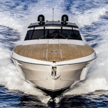 The first development that has been made with regard to previous models is the boat’s exterior design that has been deliberately perfected to enhance the craft’s aura of power. High bows, a distinctively curved profile and a sleek structure thanks to its slim central carbon roof are the features that distinguish this dynamic open yacht and highlight its sporting spirit.