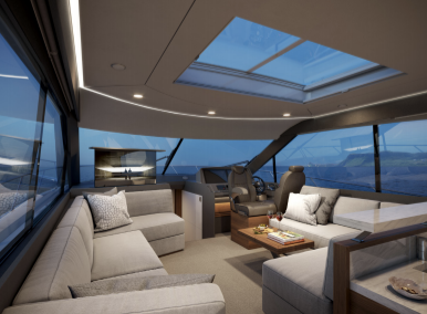 It incorporates the option to be opened with electric actuators to unveil a fully lined 2.8m (9’2”) tender garage with 250kg davit for owners looking to conceal tenders away from the rear platform. The adventure deck lower cockpit can also be integrated with an optional 1.4m (4’6”) extended platform to create a mammoth deck space with endless practical applications.